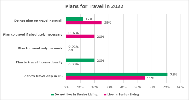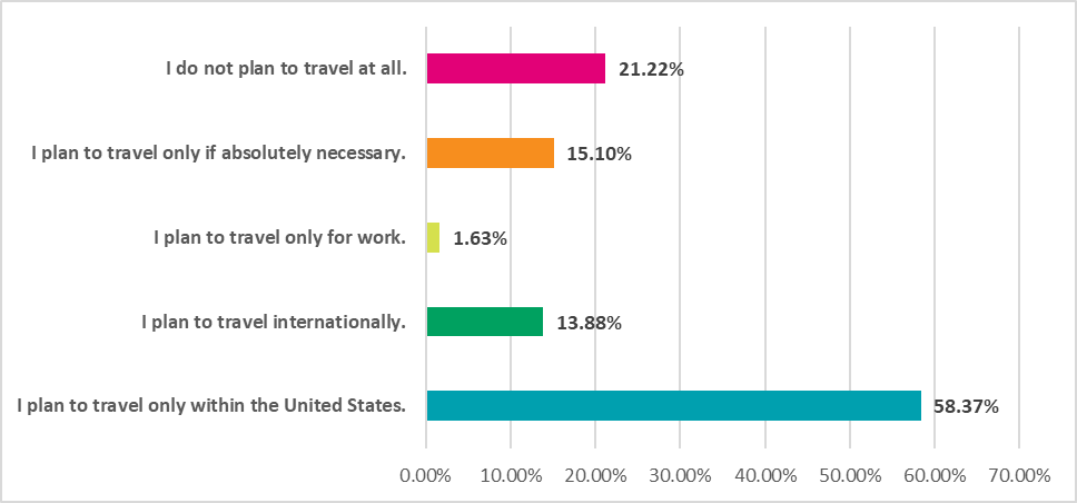 Key Findings: 20% still not planning on any travel in 2022. Almost 60% plan on travel only within the United States